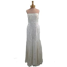 Simply elegant! Silk handbeaded strapless gown with godet skirt. FIT TIP: This style is form fitted. Use bust, waist and hip measurements to determine fit. Sizes run small. See body measurements on size chart to determine size.